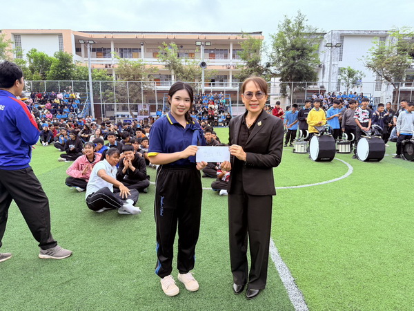 ได้มอบเงินจากการขายขวดพลาสติกของการทิ้งขยะขวดพลาสติกและสะสมของเก่าเหลือใช้ของนักเรียนในแต่ละสี