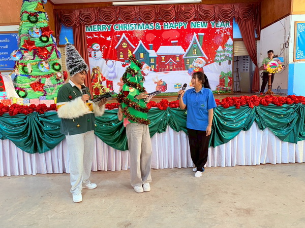 พร้อมด้วยรองผู้อำนวยการ และคณะครู ร่วมกันจัดกิจกรรมวันคริสต์มาสให้กับนักเรียน