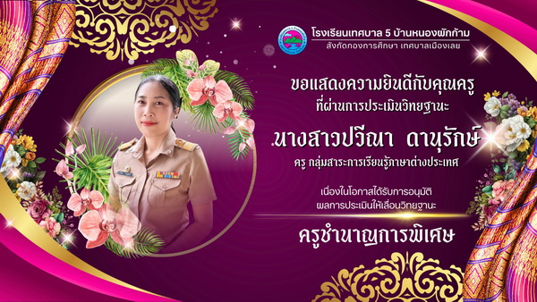 นางเอื้อการย์ ธนะสูตร ผู้อำนวยการสถานศึกษาโรงเรียนเทศบาล ๕ บ้านหนองผักก้าม