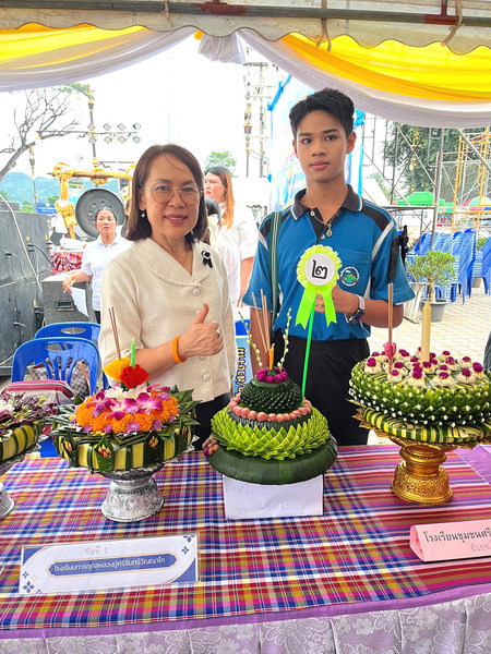 และให้นักเรียนได้เข้าร่วมแข่งขันการประกวดกระทงฝีมือ/กระทงสวยงามด้วยใบตอง