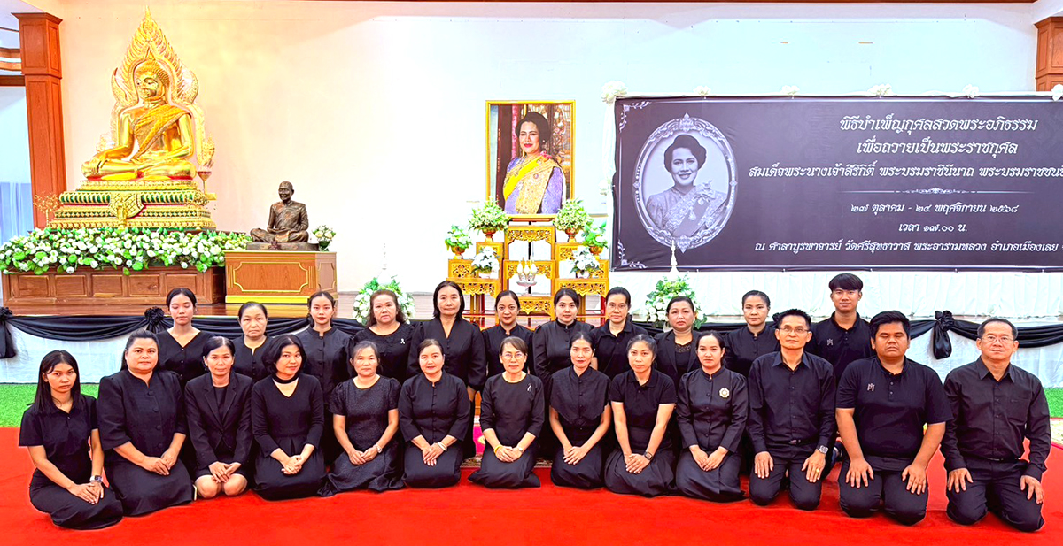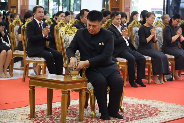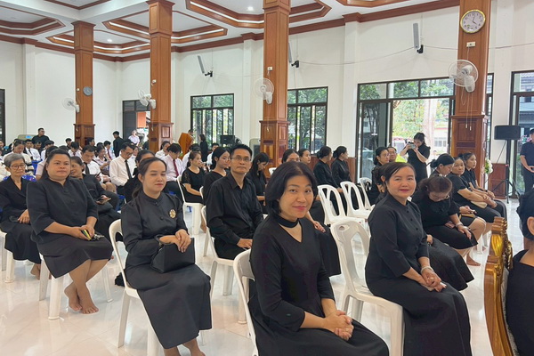 และนักศึกษาฝึกประสบการณ์วิชาชีพ เข้าร่วมพิธีบำเพ็ญกุศลสวดพระอภิธรรมถวายเป็นพระราชกุศล