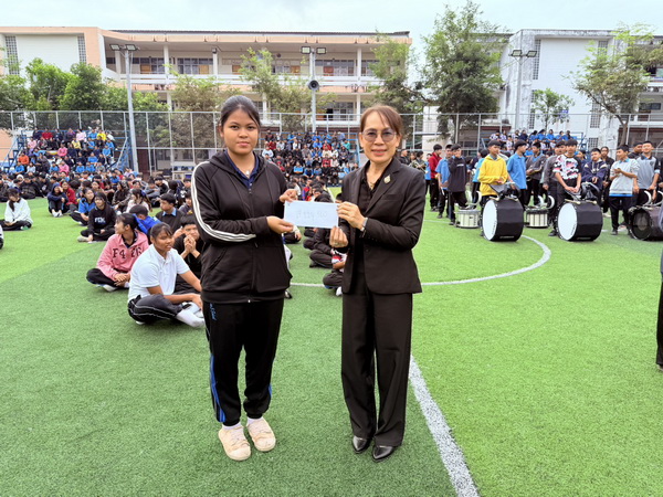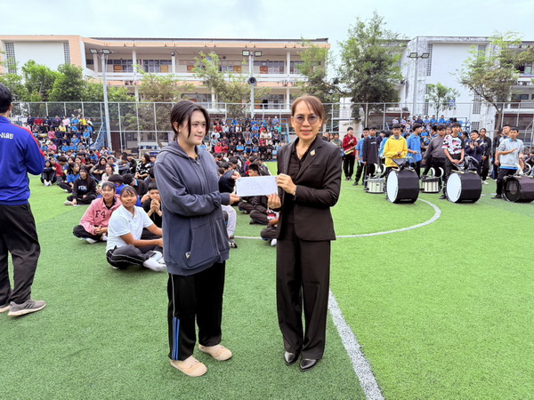 ได้มอบเงินจากการขายขวดพลาสติกของการทิ้งขยะขวดพลาสติกและสะสมของเก่าเหลือใช้ของนักเรียนในแต่ละสี