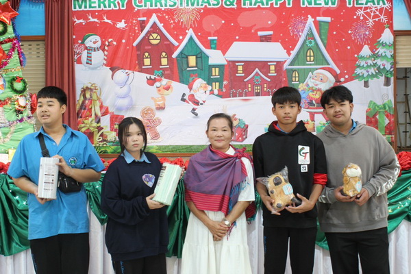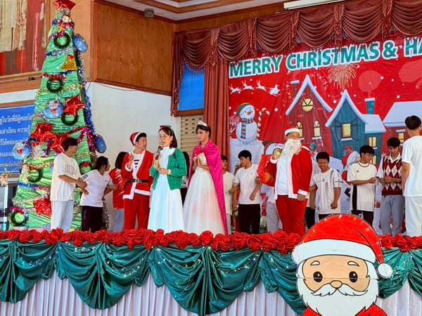 พร้อมด้วยรองผู้อำนวยการ และคณะครู ร่วมกันจัดกิจกรรมวันคริสต์มาสให้กับนักเรียน