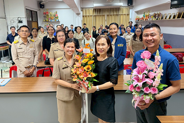 พร้อมด้วยคณะครูและนักศึกษาฝึกประสบการณ์ ได้มอบดอกไม้และร่วมกันแสดงความยินดี