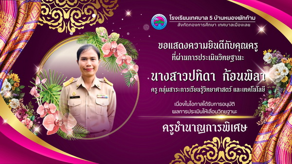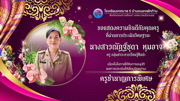 นางเอื้อการย์ ธนะสูตร ผู้อำนวยการสถานศึกษาโรงเรียนเทศบาล ๕ บ้านหนองผักก้าม