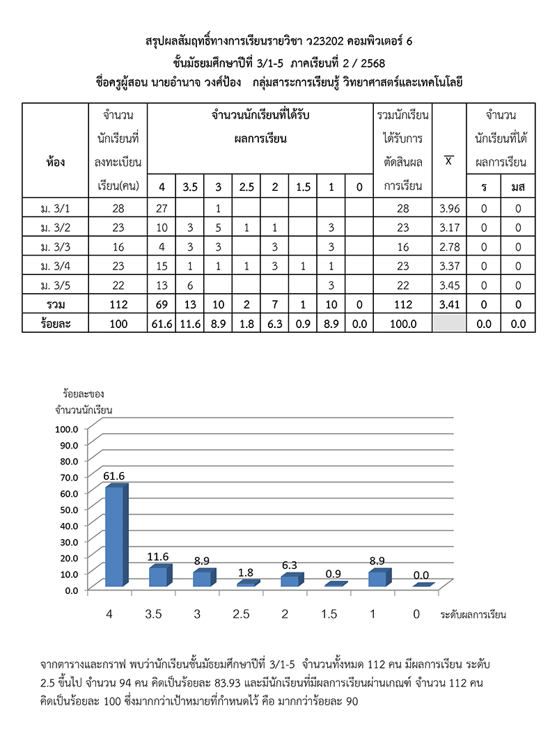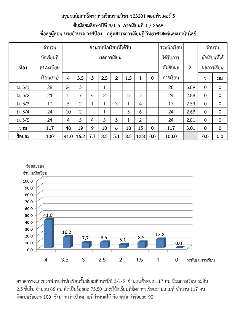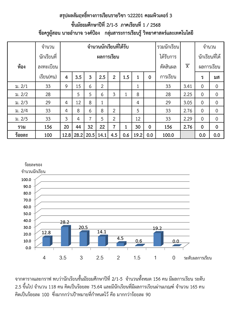 ผลสัมฤทธิ์ทางการเรียนของนักเรียน ภาคเรียนที่ 1 ปีการศึกษา 256