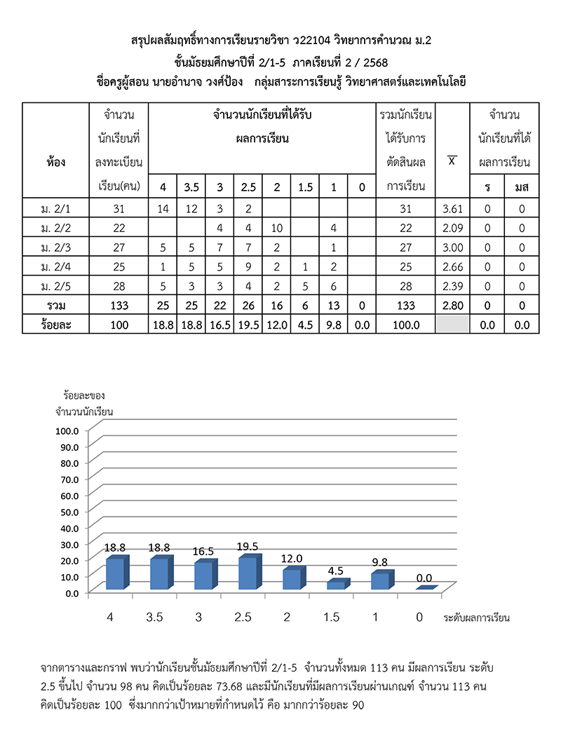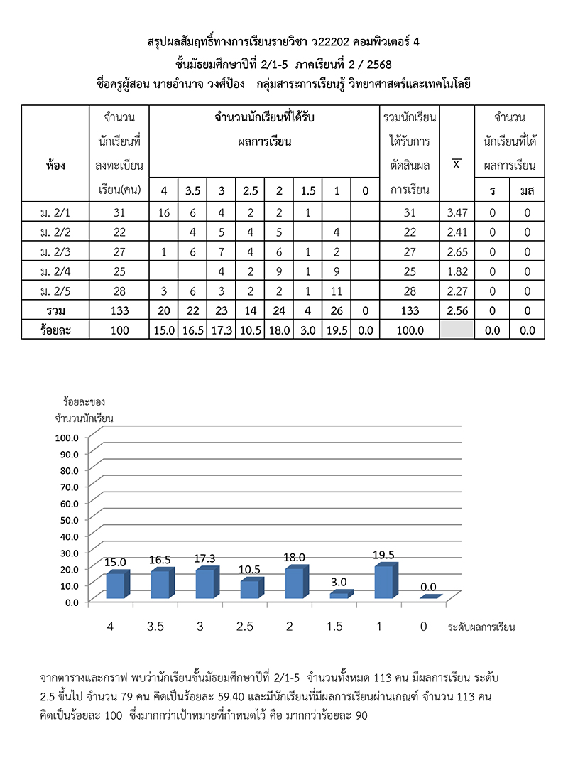 ผลสัมฤทธิ์ทางการเรียนของนักเรียน ภาคเรียนที่ 2 ปีการศึกษา 256