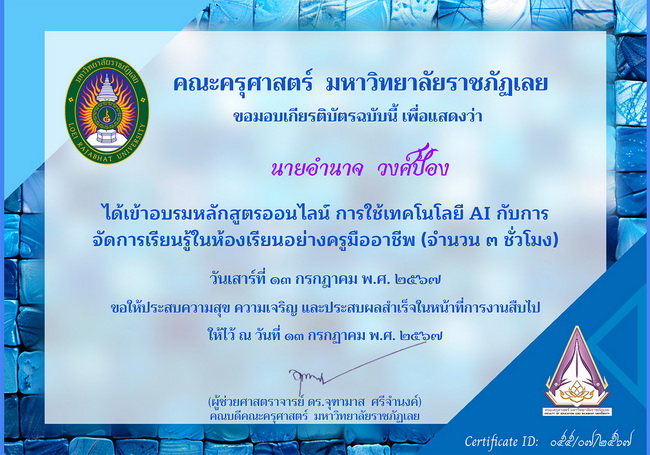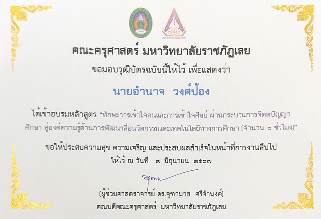 ด้รับรางวัลและเกียรติบัตรการอบรม การพัฒนาตนเอง