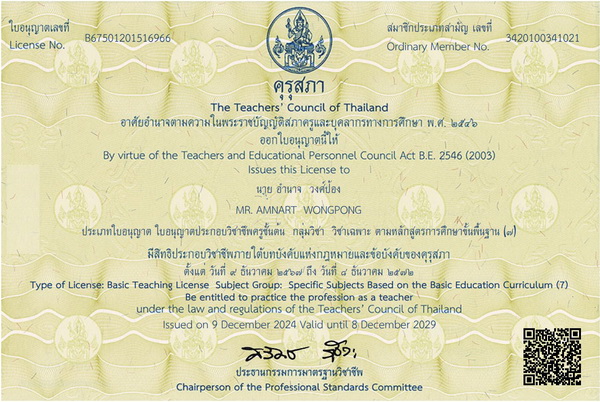 ได้รับอนุญาตจากคุรุสภาให้เป็นผู้มีสิทธิประกอบวิชาชีพครู